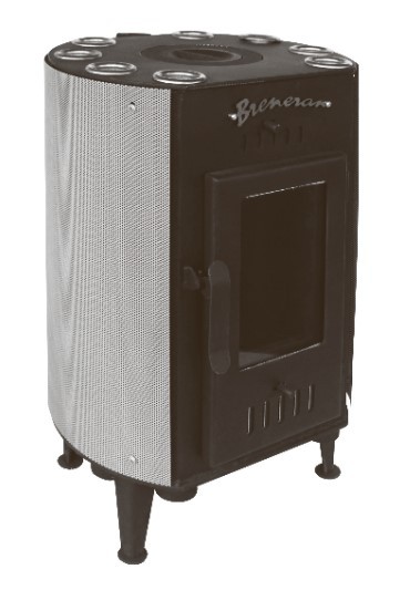Печь БРЕНЕРАН «КАНАДКА с варочной плитой» – это цельносварная конструкция из стали, покрытая жаропрочной краской (при первой протопке происходит полная ее полимеризация, которая сопровождается характерным запахом). Печь «Бренеран» состоит из двух камер сгорания: нижней камеры – камеры газификации, верхней камеры – камеры дожигания газов. В трубах имеются инжекторы-дожигатели. Эта уникальная конструкция совмещает в себе достоинства газогенераторной печи длительного горения «Бренеран» с возможностью приготовления пищи. Незаменима в условиях отсутствия газа и электричества. Печь БРЕНЕРАН «КАНАДКА с варочной плитой» рассчитана на обогрев помещения объёмом до 50 м3, имеет КПД 60% - 70% и может работать на одной закладке дров до 4-5 часов. Закипание 6-ти литровой ёмкости происходит за 40-60 минут. Приготовление и разогрев пищи на конфорке возможен в режиме горения, а обогрев помещения - в режиме тления. Благодаря тому, что трубы, образующие корпус, полностью находятся в топке печи, происходит максимальный нагрев воздуха, циркулирующего по трубам. Сразу после розжига печи происходит забор холодного воздуха нижними трубами и выход тёплого из верхних, что позволяет теплу быстро и равномерно распространяться по помещению. Температуру на кромке верхних труб (от 50°С до 120°С) можно изменять регулятором мощности. Прибор также позволяет регулировать скорость сгорания топлива - посредством задней заслонки на выходном патрубке печи (регулятора- газификатора). Высокие показатели работы устройства во многом зависят от грамотности монтажа самой печи, её дымохода, степени утепления помещения.