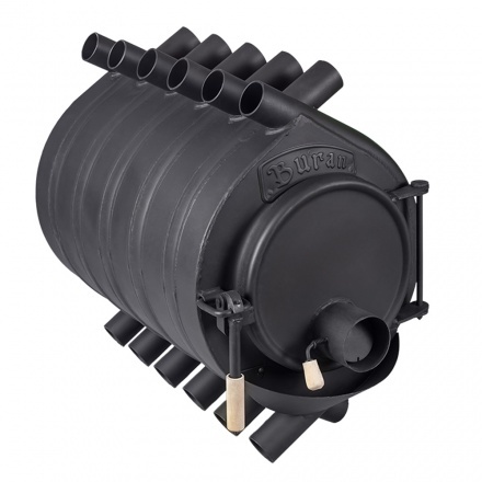 Печь отопительная Буран применяется для обогрева помещений различного назначения: цехов, теплиц, мастерских, гаражей, строительных бытовок. Кроме того, данное устройство может применяться в бытовых нуждах, например, для сушки фруктов или грибов. Отопительные устройства такого класса, как печи «Буран» — обеспечат Вам максимальный комфорт и удобство эксплуатации. Печь длительного горения «Буран» представляет собой стальную цельносварную конструкцию, состоящую из двух камер. В нижней камере топливо газифицируется, а в верхней происходит дожигание газов. Передние трубы оборудованы специальными инжекторами — дожигателями. Корпус отопительной печи покрыт жароустойчивой краской, которая подвергается полной полимеризации во время первого использования (процесс сопровождается характерным запахом). Печь оснащена двумя регуляторами: на передней дверце расположен регулятор мощности, а на дымоходном патрубке, находящемся с обратной стороны, — регулятор-газификатор. Отопительные печи«Буран» работают на любом твердом топливе, кроме угля. Для растопки можно использовать дерево, в том числе древесные брикеты, картон, торфяные брикеты. Коэффициент полезного действия отопительной печи«Буран» составляет 70 - 80%.