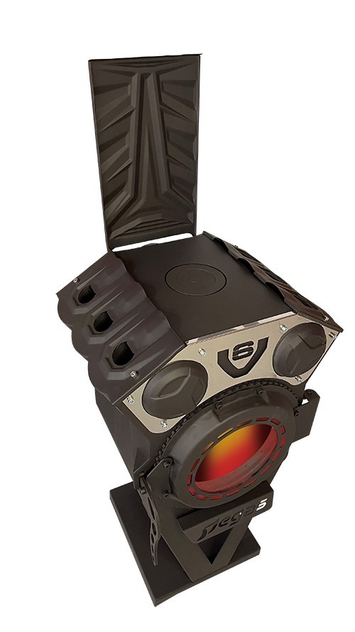 Дровяная отопительная печь Пегас V6 предназначена для обогрева зданий, сооружений, хозяйственных, бытовых помещений, а также разогрева и приготовления пищи. Печи изготавливаются с использованием современных технологий раскроя, гибки, сварки и формообразования металла. Применяемые материалы обеспечивают надёжность, экологичность и безопасность. Печи относятся к нагревательным устройствам, работающим на твердом топливе (дровах).Основой печи является корпус, представляющий собой сварную конструкцию. Дверка герметичная с жаростойким стеклом. Топка печи вместительная и позволяет сформировать объемную закладку дров, тем самым увеличить время работы в режиме длительного горения. Через щели в колосниковой решетке зола попадает в зольный совок, с помощью которого можно легко производить очистку печи.