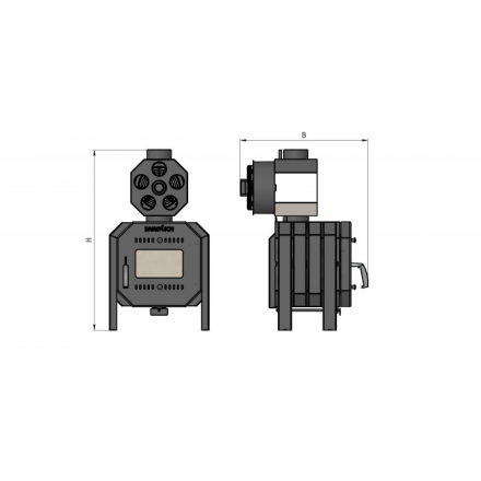 Корпус печи Promka выполнен из котловой стали 3-5 мм. Он имеет особое строение: с наружной части - трубное оребрение - оно снимает тепло с печи, а внутри топки - жаропрочный шамот, который аккумулирует тепло и сохраняет печь от перегрева.