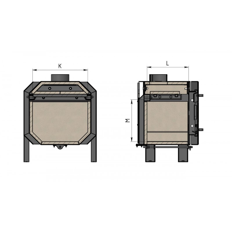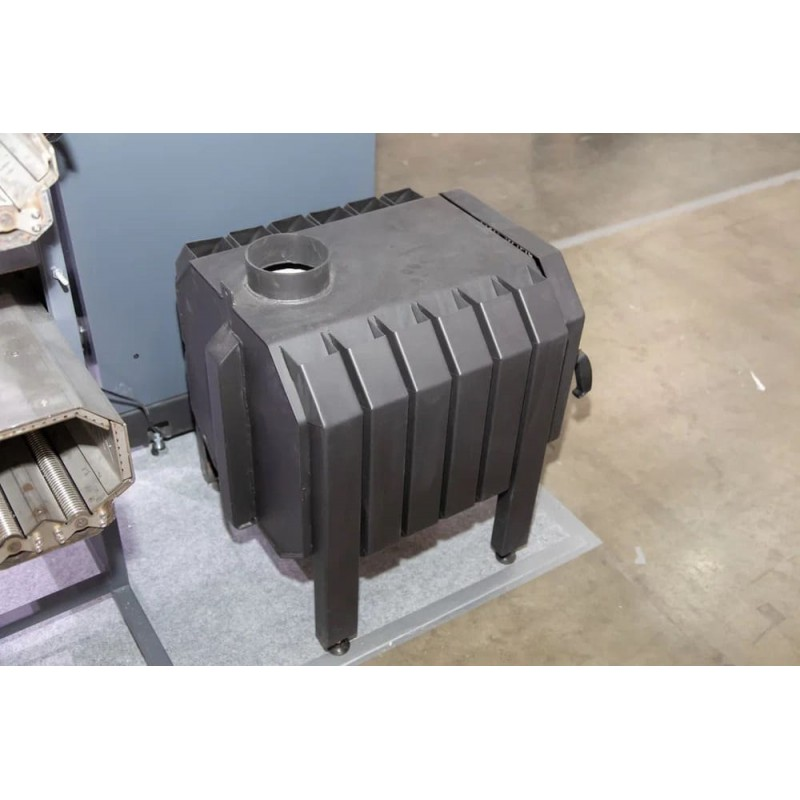 Корпус печи Promka выполнен из котловой стали 3-5 мм. Он имеет особое строение: с наружной части - трубное оребрение - оно снимает тепло с печи, а внутри топки - жаропрочный шамот, который аккумулирует тепло и сохраняет печь от перегрева.