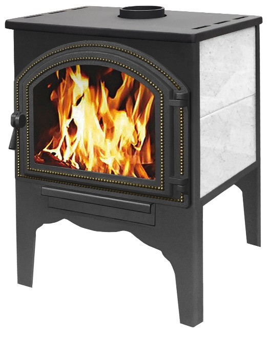 Печь отопительная Везувий В8 на дровах - Для помещений до 120м.куб, Чугунная дверца с каминным стеклом, Керамические вставки