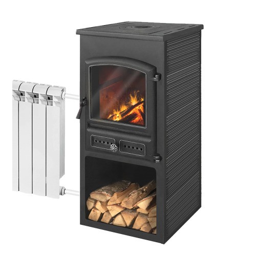 Печь-камин ЭТНА (БКД) с плитой и ТО "Антрацит" высокий из высококачественной конструкционной стали