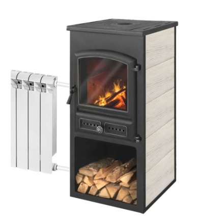Печь-камин ЭТНА (БКД) с плитой и ТО "Беж" высокий из высококачественной конструкционной стали