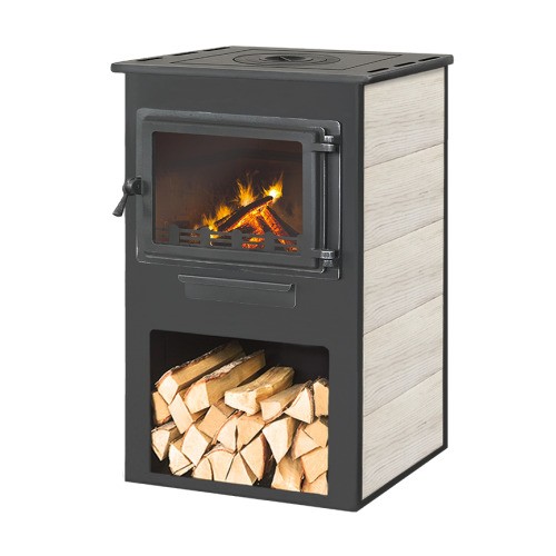 Печь-камин ЭТНА (Панорама) с плитой "Беж" высокий из высококачественной конструкционной стали
