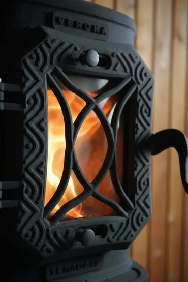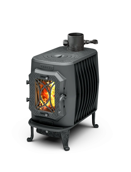 Интерьерная чугунная печь Verona — это мощная и компактная отопительная печь для дома, дачи и загородного коттеджа, рассчитанная на обогрев помещений общим объёмом до 200 м³. Печь отлично подходит для установки в жилых комнатах, гостиной, мастерской или банном комплексе (в зоне отдыха).