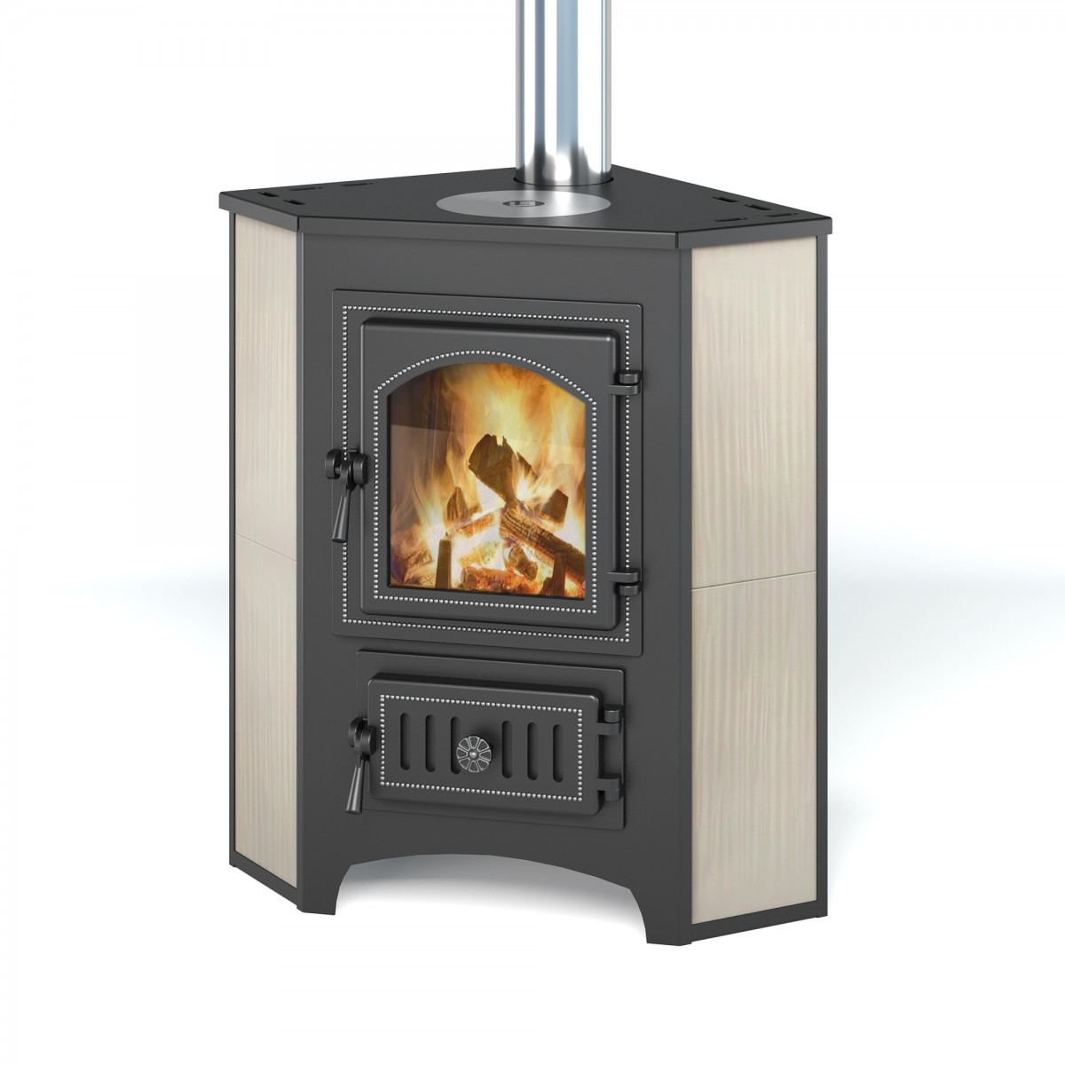 Печь-камин Везувий ПК-01 (220) с конфоркой угловой бежевый для обогрева хозяйственных и бытовых помещений