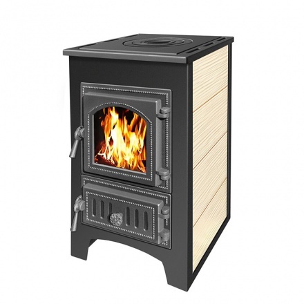 Печь-камин Везувий ПК-01 (270) c плитой беж. 9 кВт предназначена для отопления помещений до 150 м3. Камин выполнен из высококачественной конструкционной стали и имеет легкозаменяемые вставки из шамота. В отделке корпуса используются керамические вставки. Для приготовления пищи в конструкции камина предусмотрена чугунная варочная поверхность.