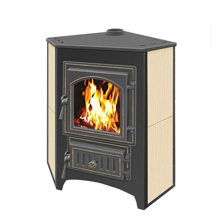 Печь-камин Везувий ПК-01 (270) угловой беж. 9 кВт предназначена для отопления помещений до 150 м3. Камин выполнен из высококачественной конструкционной стали и имеет легкозаменяемые вставки из шамота. В отделке корпуса используются керамические вставки. Для приготовления пищи в конструкции камина предусмотрена чугунная варочная поверхность.