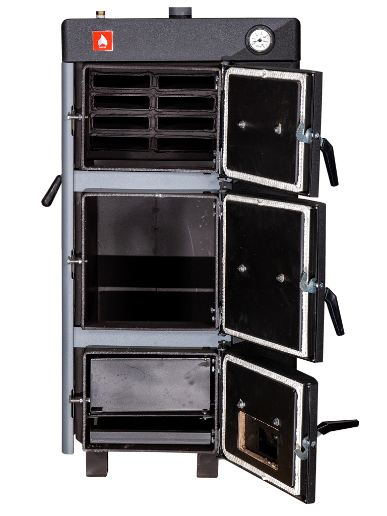 Комбинированный котел Житомир-9 - одноконтурный, комбинированный котел, газ/твердое топливо, энергонезависимый, возможна одновременная работа на обеих видах топлива! Отдельные блоки газового и твердотопливного котла позволяют работать на двух видах топлива независимо друг от друга. Допускается использование каменного и бурого угля, который не спекается, дров и брикетированного твердого топлива с соответствующим незначительным снижением теплотехнических показателей аппарата.