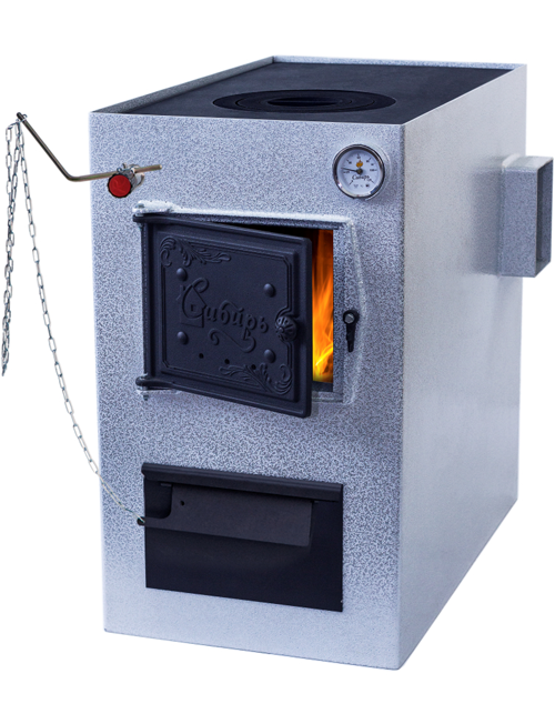 Для автоматического управления подачей воздуха в камеру сгорания на дверце зольника установлена воздушная заслонка, через цепочку управляемая энергонезависимым терморегулятором. В верхней части твердотопливного котла Сибирь имеется загрузочный люк, облегчающий работу по закладке топлива.