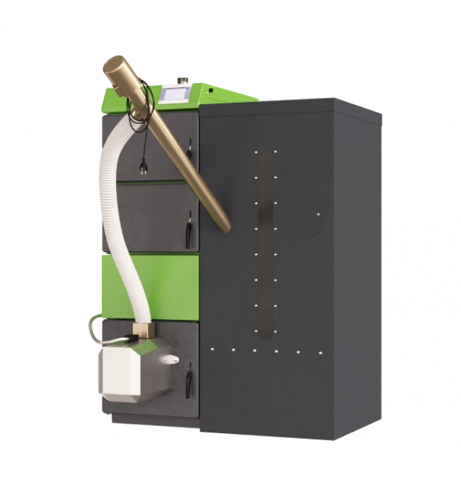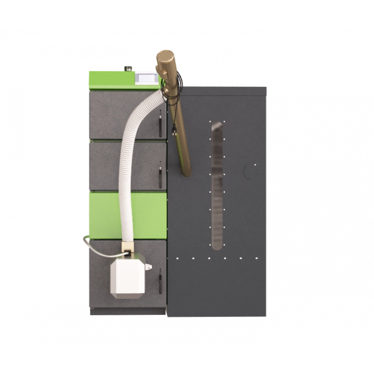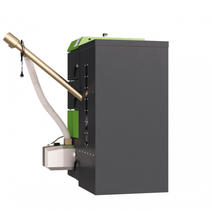 Управление горелкой осуществляется с помощью входящего в комплект поставки контроллера, то есть горелка не требует обслуживания - растопка, сжигание, гашение и чистка горелки осуществляются автоматически. Поступающее в горелку топливо должно храниться в герметичном, закрытом контейнере, и должно транспортироваться с помощью подающего устройства со спиральным вкладышем, соответствующей длины и мощности.