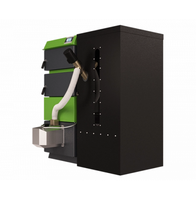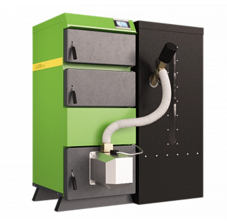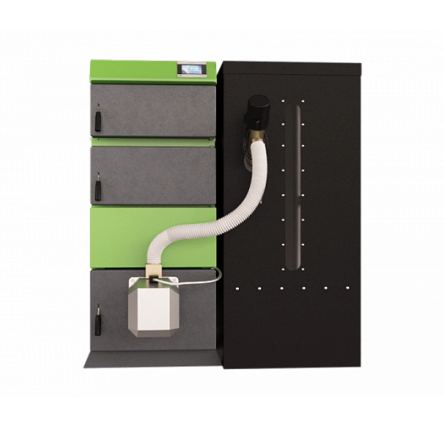 Основным топливом являются пеллеты или дрова (как резервное топливо), благодаря водонаполненным колосникам. Оснащен бункером для загрузки и шнеком для их подачи в горелку. Управление производится при помощи встроенной автоматики.