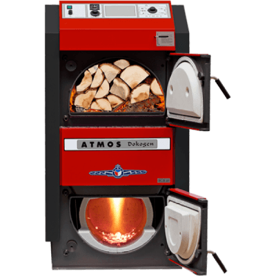Твердотопливный пиролизный котел Atmos DC 15 EА. Мощность 15кВт, площадь до 150м2, основное топливо дерево, гарантия 24 мес