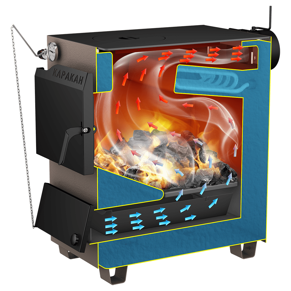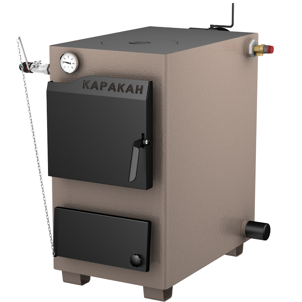 Твердотопливный котел СТЭН Каракан 16ТПЭВ-3, корпус 3мм, L топки от 560 мм, возможность подключения ТЭНа до 9 кВТ, варочная поверхность, двухконтурный