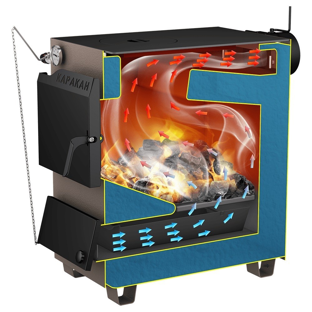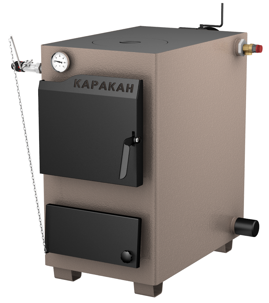 Твердотопливный котел СТЭН Каракан 20ТПЭВ-3, корпус 3мм, L топки от 560 мм, возможность подключения ТЭНа до 9 кВТ, варочная поверхность, двухконтурный