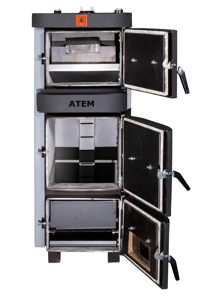 Твердотопливный котел АТЕМ Житомир-14М имеет увеличенный размер топки котла "Житомир" позволяют комфортно загружать топливо разного размера, а конструкция теплообменника спроектирована таким образом, чтобы значительно снизить засор котла продуктами сгорания и обеспечить стабильную работу в любых условиях!