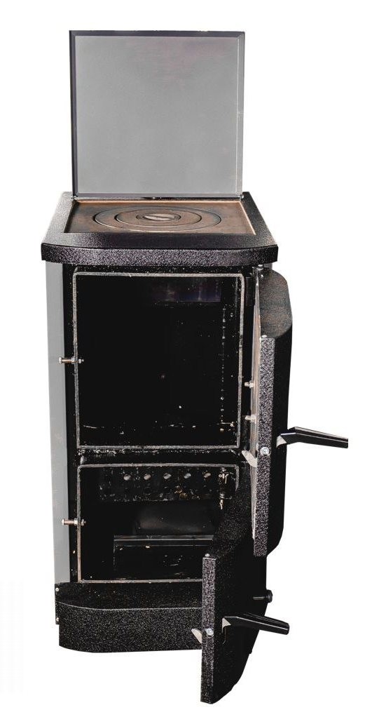 АТЕМ Житомир АКТВ-14 - с плитой одноконтурный, универсальный твердотопливный (дровяной) котел предназначен для отопления на разных видах твердого топлива - уголь, дрова, щепуи, тырса, брикеты и др. Котел предназначен для нагрева на плите (варочной поверхности 1 комфортка) продуктов в стандартной посуде в бытовых нуждах.