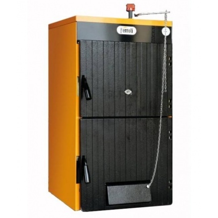 Котел на твердом топливе FERROLI SFL 5. Мощность: 36/41/42,5 кВт; Площадь отопления: до 425 м2; Камера сгорания: открытая; Топливо: уголь, дрова, брикеты; КПД: 87; Гарантия 24 мес