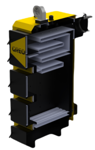 В котле установлена чугунная колосниковая решетка (15-40 кВт), или водяная колосниковая решетка (50-250 кВт). Многоканальная система подачи воздуха обеспечивает длительное и равномерное сжигание топлива сверху вниз. Такое преимущество позволяет использовать различные виды топлива, разных размеров и фракций. При компактных размерах котел имеет значительную площадь конвекционной поверхности, что обеспечивает высокий уровень КПД и значительно экономит расход топлива. Котлы серии PROFI оснащены вентилятором и блоком управления для автоматизации работы котла.