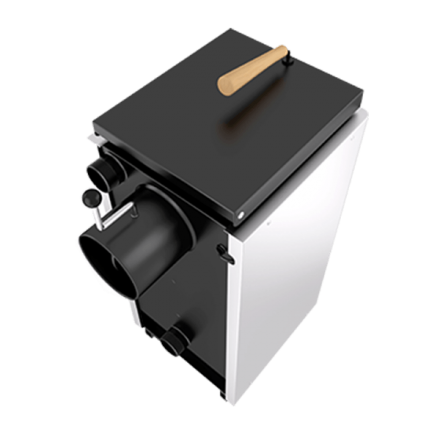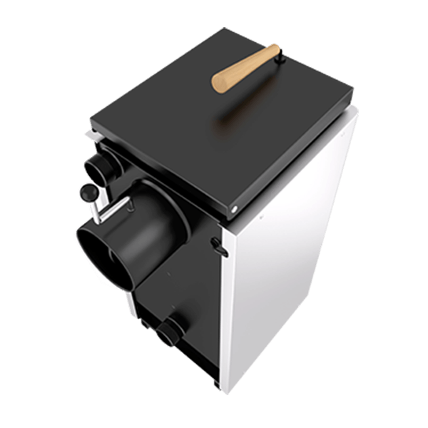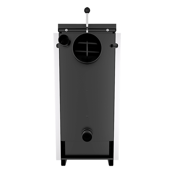 Отличительной чертой котла является верхняя (сверху) загрузка топлива. Это позволяет устанавливать котел в негабаритные места или в комнаты с небольшой площадью.