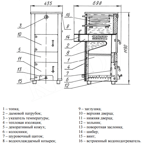 | Дополнительный вид топлива | дрова, торф, уголь, газ |