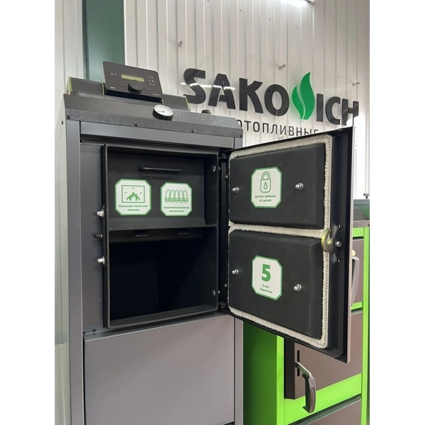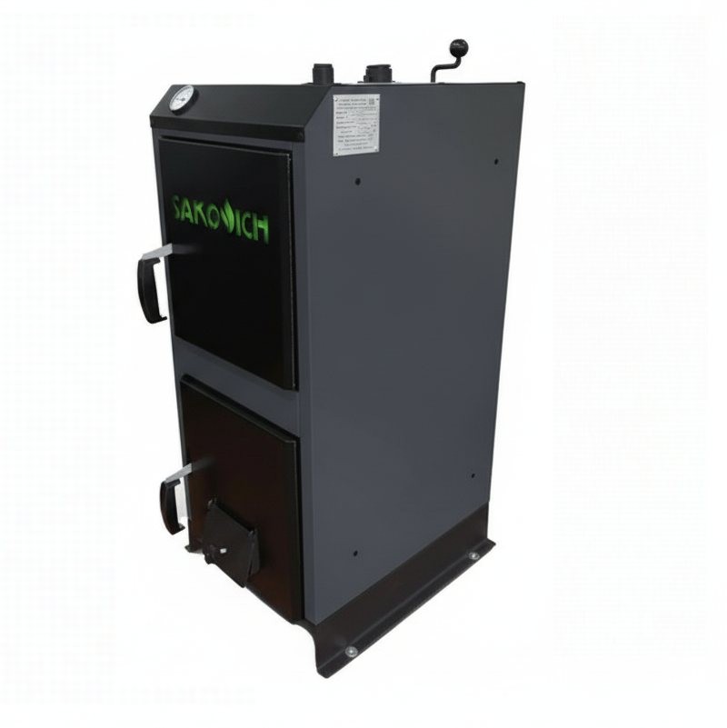 Твердотопливный котел Sakovich Standart 20 - одноконтурный, напольный, мощность 20 кВт, площадь отопления 200 м2. Кочерга и совок в комплекте!