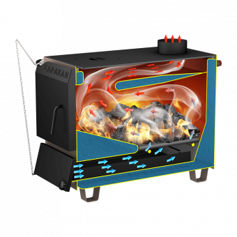 Котел Каракан - 12 ТПЭ3 предназначен для обогрева жилых и производственных объектов. Корпус котла сварной, из стали толщиной 3 мм. Длина используемых дров - до 60 см. Имеется варочная плита с одной конфоркой. Возможна установка автоматического регулятора тяги. Подключение подачи и обратки – универсальное (справа и слева). Предусмотрена возможность установки блока ТЭНов. Для управления ТЭНами предназачены пульты ПУЭ и терморегуляторы производства ГК СТЭН.