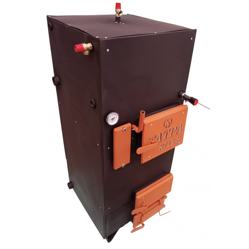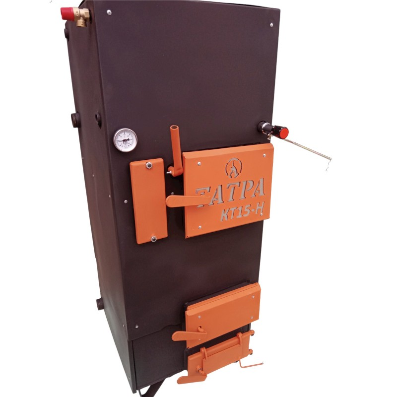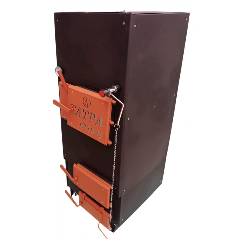 Котел Татра КТ15-НЛ2 работает на твердом топливе и представляет собой гибрид пиролизного котла и котла горизонтального горения (шахтного типа). Длительность горения на одной закладке топлива составляет 12 и более часов. При условии номинальных нагрузок: отапливаемое помещение до 120 м2 и утепление здания согласно климатической зоны