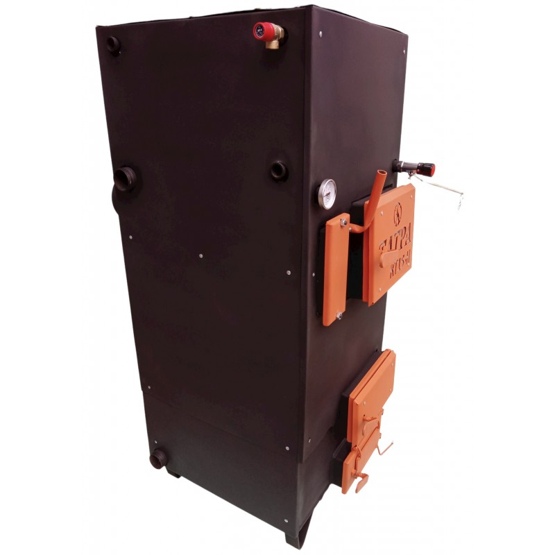Твердотопливный котел Татра КТ15-НЛ2 (6 мм) левое подключение, двухконтурный. Мощность: 15 кВт; Площадь помещения: до 120 м2; Виды топлива: дрова, торф, брикеты; КПД: 87%