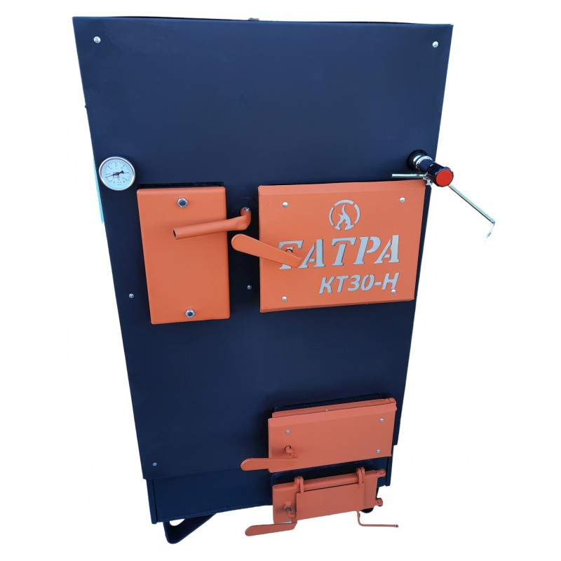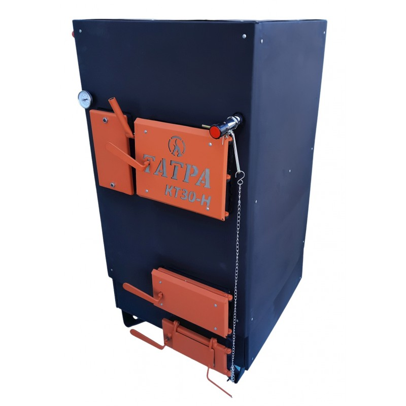 Котел Татра КТ30-НП2 работает на твердом топливе и представляет собой гибрид пиролизного котла и котла горизонтального горения (шахтного типа). Длительность горения на одной закладке топлива составляет 12 и более часов. При условии нагрузок не превышающих номинальные: отапливаемое помещение от 130 до 200 м2 и утепление здания согласно климатической зоны.