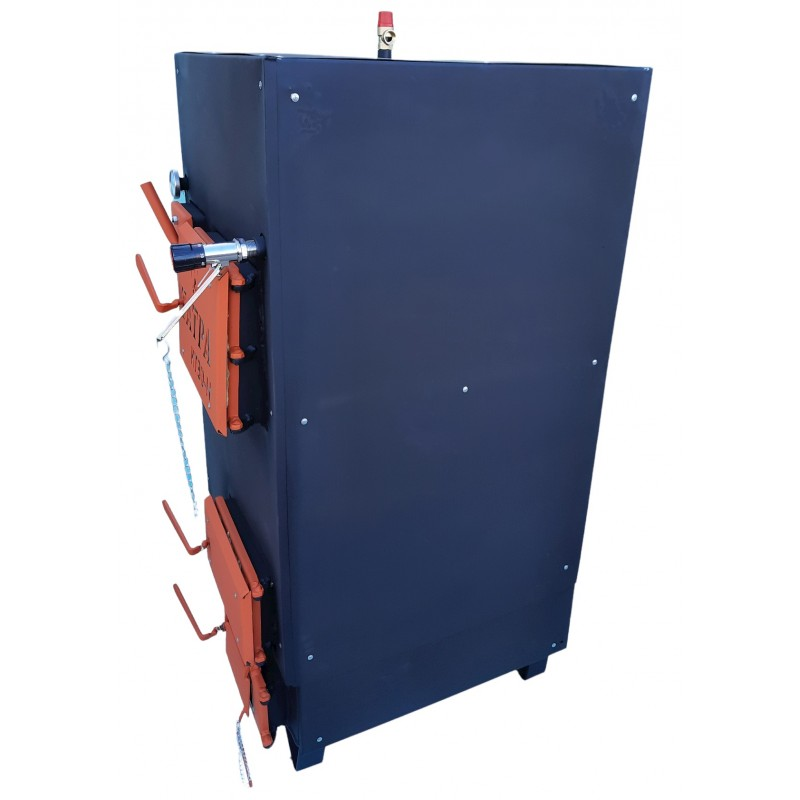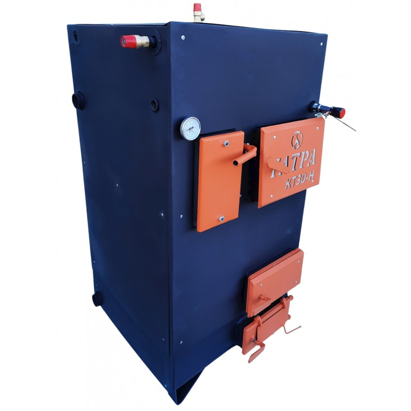 Твердотопливный котел Татра КТ30-НЛ2 (6 мм) левое подключение, двухконтурный. Мощность: 30 кВт; Площадь помещения: до 250 м2; Виды топлива: дрова, торф, брикеты; КПД: 87%