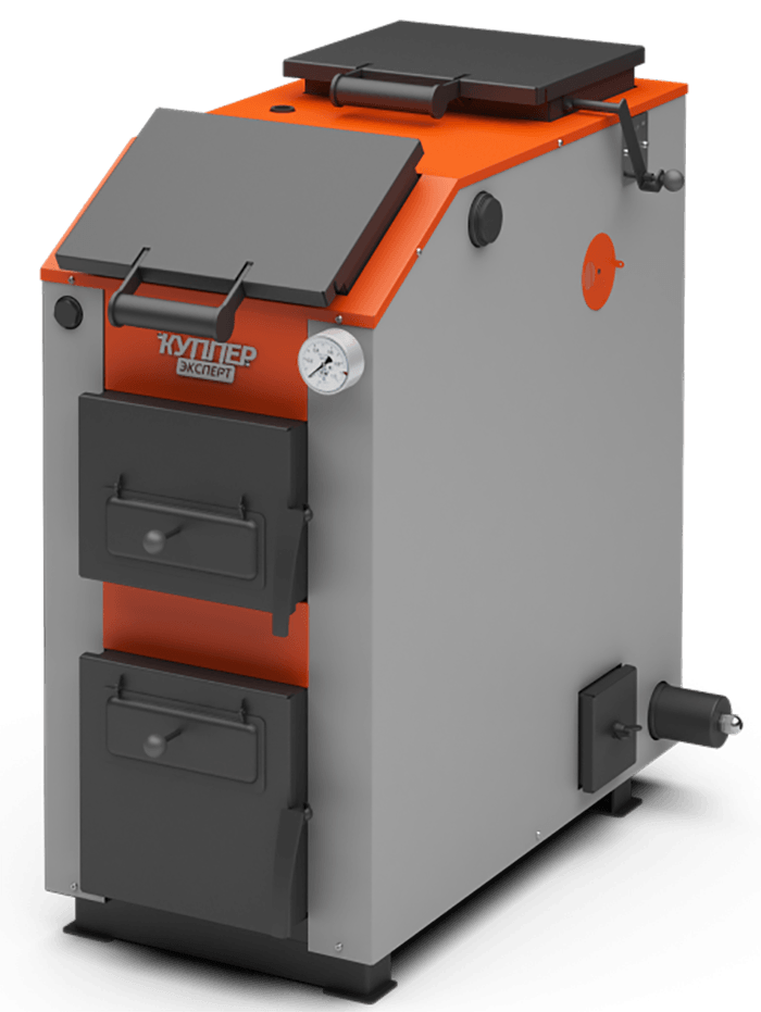 Отопительный котел Теплодар Куппер Эксперт 45 для отопления помещений дома (дачи) общей площадью до 450 м.кв. Работает на топливе: дрова, уголь, торфобрикет, электричество (комплект ТЭН в каждом котле), газ и пеллеты при наличии соответствующей горелки (приобретается отдельно). Имеется возможность установить регулятор мощности (тяги) (приобретается отдельно!). Котел имеет "рубашку" заполненную теплоносителем (вода, антифриз), омываемый (водотрубный) колосник и топку шахтного типа и трубчатый теплосъемник для эффективного нагрева теплоносителя. Организован режим длительного горения на одной закладке топлива до 24 часов за счет системы подачи вторичного и третичного воздуха в камеры сгорания. Подключение системы отопления возможно как слева так и справа от котла. Возможно подключение теплых полов, подогрева бассейна и др. с использованием гидравлического разделителя.