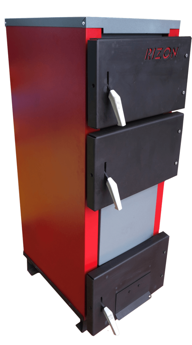 Твердотопливный котел Теплоприбор RIZON М 10 – это совершенно новый твердотопливный котел белорусского производителя. Судя по конструкции, котел сильно напоминает польские котлы длительного горения, учитывая, что в паспорте котла минимальное время горения на дровах составляет 8 часов, можно предположить, что данный котел тоже относится, к котлам длительного горения. Предназначен для теплоснабжения индивидуальных жилых домов и зданий коммунально-бытового назначения, оборудованных системой водяного отопления с естественной или принудительной циркуляцией в открытых и закрытых системах отопления.