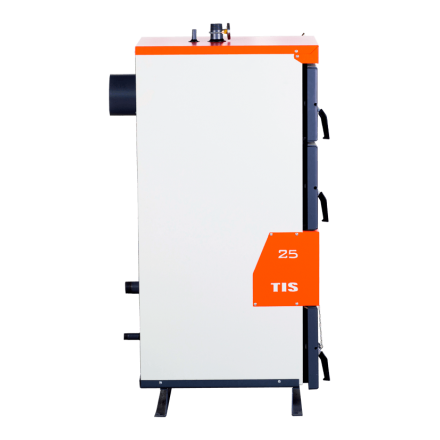 Система подачи воздуха в первичную и во вторичную камеру сгорания обеспечивает максимальный дожег выделяемых газов. Температура отработанных газов не более 130 - 150°C, тем самым достигается высокий КПД и увеличивается время работы котла на одной загрузке до 12 ч. (в котлах ТИС ПРО др 22, 17, 27 время работы котла больше на 4 часа). Отличительная черта этого котла - это увеличенная топка по сравнению к аналогичным котлам производимым в Европе. Удобные широко открывающиеся двери, чугунные колосники. Номинальная мощность 6-30 кВт.