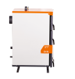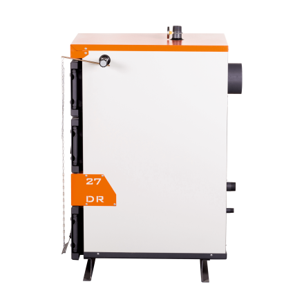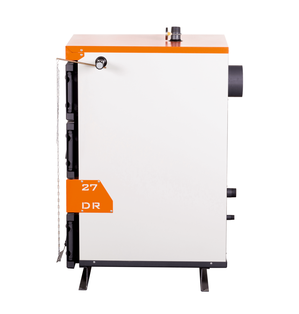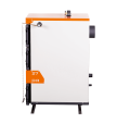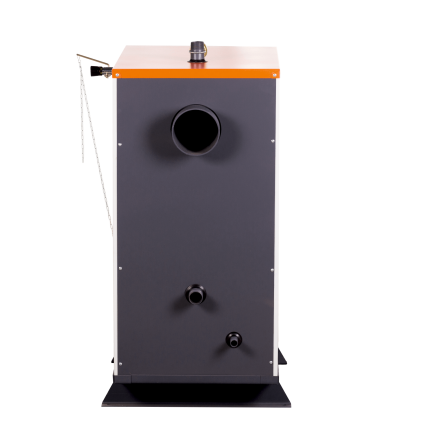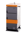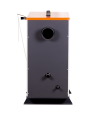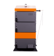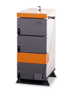 Основной вид топлива древесина различных пород. Дополнительный вид топлива: уголь, торф, древесный брикет. Котлы горят с использованием естественного доступа воздуха. Процесс горения не требует электроэнергии. Возможность сжигания больших поленьев размером до 50 см. Твердотопливный котёл изготовлен из 5 мм стали марки PGH265. Корпус котла имеет сплошную водяную рубашку, которая окружает топку со всех сторон. Эффективный теплообменник, расположенный в верхней части котла позволяет «отправлять» максимально полученное тепло в дом потребителя без потерь.