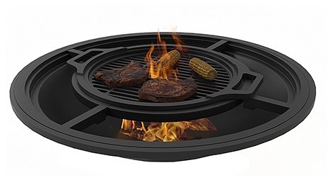 Рабочее кольцо диаметром 380 миллиметров соединяется с кольцом-подставкой стальными прутками диаметром 10 миллиметров. Оно размещается на высоте 10 см от нижнего кольца. Достаточное расстояние от дна чаши до кольца (28 см) позволяет разместить на адаптере не только плоскую решётку-гриль Везувий диаметром 38 см, но и глубокую посуду: сковороду, казаны Везувий и Сербский казан 14 л. Высота адаптера позволяет совершенно спокойно подложить в костровую чашу дров или поворошить угли в глубине самой чаши. Оптимальный размер посуды, устанавливаемой на этот адаптер, удобен для готовки в небольшой семье из 4-5 человек. Адаптер – полезное, лёгкое и простое приспособление, которое поможет вам сделать целый поварской комплекс из чугунной костровой чаши Везувий Фантастик и добавить новых функций чугунному Фантастик Гриль 700.