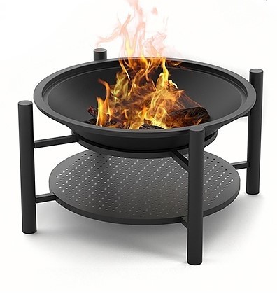 На четыре ножки из стальной трубы опирается, кольцо для размещения чаши, кроме того ниже кольца расположена полка из миллиметровой стали, которая выполняет несколько задач. Во-первых, на ней можно разместить топливо, или аксессуары для ухода за костровой чашей: совок, кочергу. Во-вторых, она защищает газонную траву под чашей от перегрева и выгорания. По всей поверхности полки лазером прорезаны небольшие отверстия, которые предотвращают накопление воды или грязи на самой полке. Порошковая краска, которой покрашена подставка для костровой чаши ЛЮКС, устойчива к воздействию атмосферных осадков и хорошо защищает поверхность металла от коррозии и случайных повреждений. Подставка ЛЮКС на десять сантиметров выше штатной подставки для костровой чаши, что ещё сильнее облегчает использование и обслуживание Везувий FANTASTIC. Высота подставки 450 миллиметров.