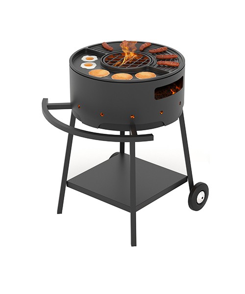 В центре плиты предусмотрено круглое отверстие, через которое удобно обслуживать мангал: добавлять дров, подсыпать уголь из мешка или перемещать горящие угли под зону, требующую высокой температуры нагрева. В комплект чугунной плиты Везувий Gurman Ø450 входит небольшая решётка ля стейков, диаметром 194 мм. Её можно удобно разместить в середину плиты для того, чтобы получить аппетитные куски мяса с крупным диагональным рисунком.