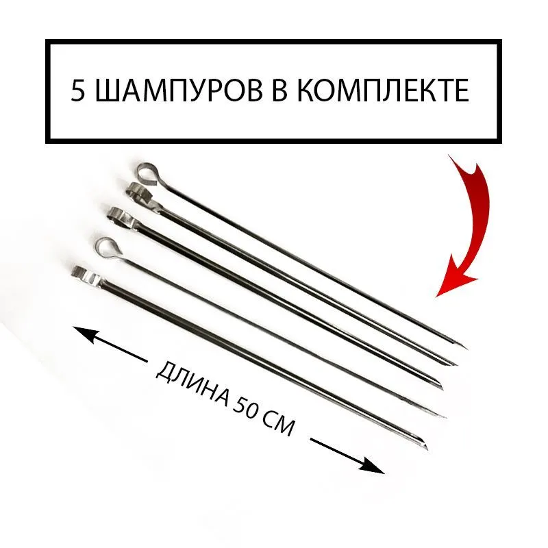 Шампуры-самокруты с механизмом вращения на 5 шампуров предназначены для приготовления вкусного и сочного мяса, а так же овощей и грибов на мангале, гриле, самодельных очагах и даже ямах.