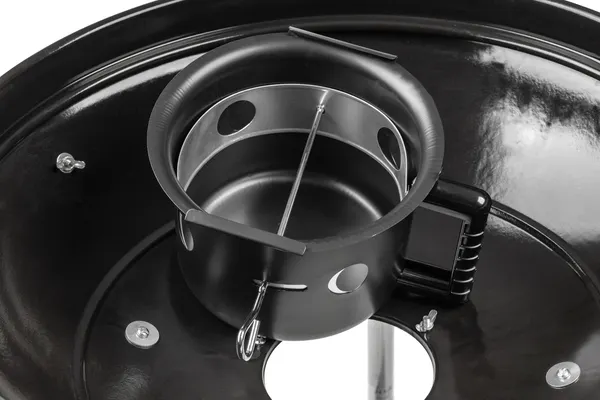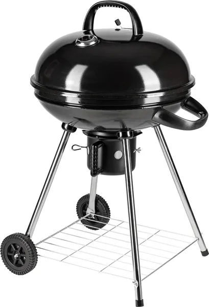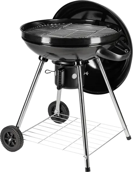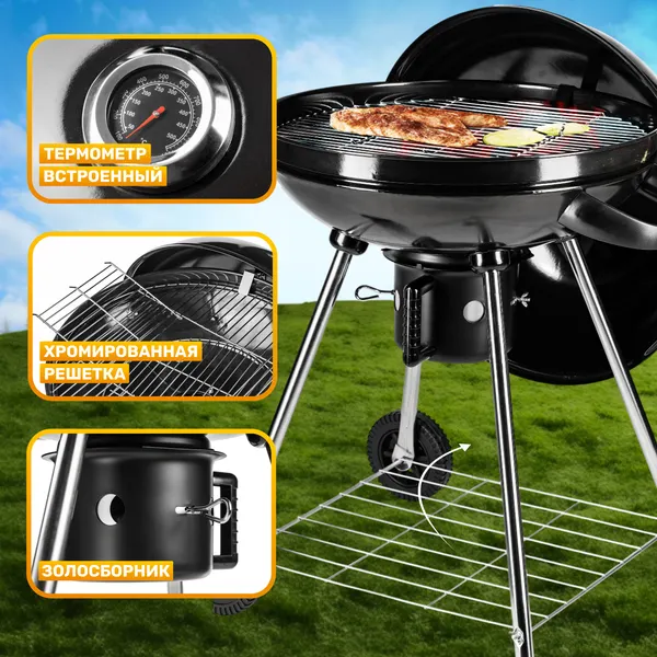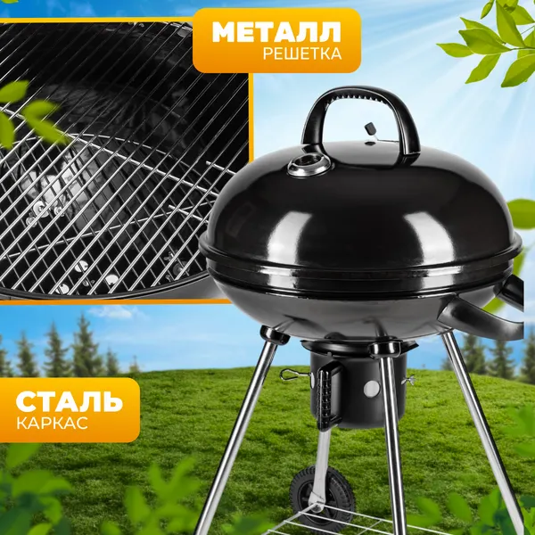 Угольный гриль переносного типа с закрытой конструкцией подходит для приготовления блюд на открытом воздухе. Стальной каркас и хромированная металлическая решетка рассчитаны на длительный срок службы. Черный цвет сохраняет практичность при частом использовании.