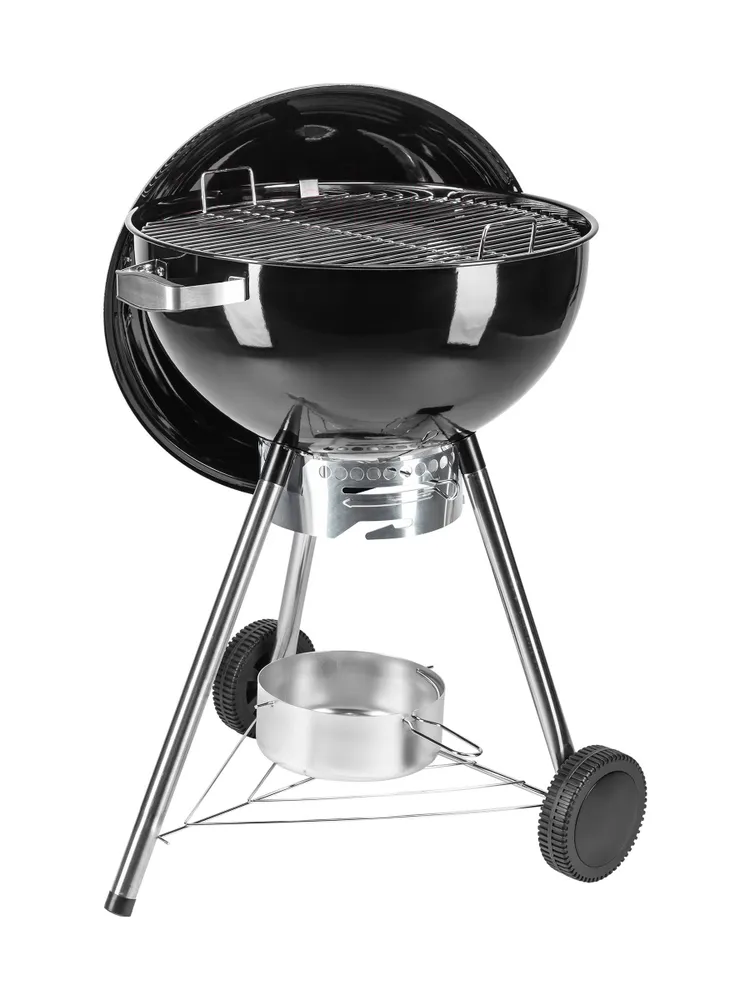 Угольный гриль переносного типа с закрытой конструкцией подходит для приготовления блюд на открытом воздухе. Стальной каркас и металлическая решетка рассчитаны на длительный срок службы. Черный цвет сохраняет практичность при частом использовании.