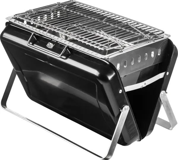Угольный гриль переносного типа с открытой конструкцией подходит для приготовления блюд на открытом воздухе. Решетка из хромированного металла устойчива к высоким температурам и способствует равномерному прожариванию. Стальной каркас рассчитан на длительный срок службы, а вентиляция помогает регулировать интенсивность горения углей. Черный цвет сохраняет практичность при частом использовании.
