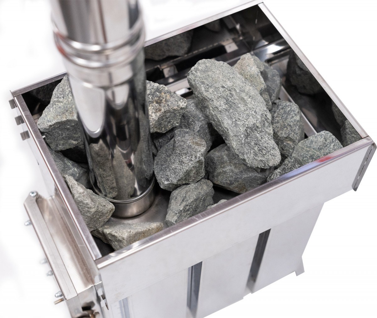 Каменка для мобильной печи "Турист" представляет собой сборно-разборную конструкцию, устанавливаемую на верхнюю часть мобильной печи для дальнейшего использования в качестве мобильной бани. Каменка состоит из 4-х элементов, выполненных из нержавеющей стали марки AISI 430, толщиной 1 мм, соединенных между собой по типу "пазл". Ее вес составляет 1,4 кг, а компактные размеры в сложенном виде позволяют максимально комфортно транспортировать ее вместе с печью. Для функционирования в качестве мобильной бани необходимо в каменке разместить камни вулканических пород, отличающихся повышенной теплоемкостью. Каменка является дополнительно приобретаемой опцией, которая не входит в комплект поставки мобильной печи "Турист".