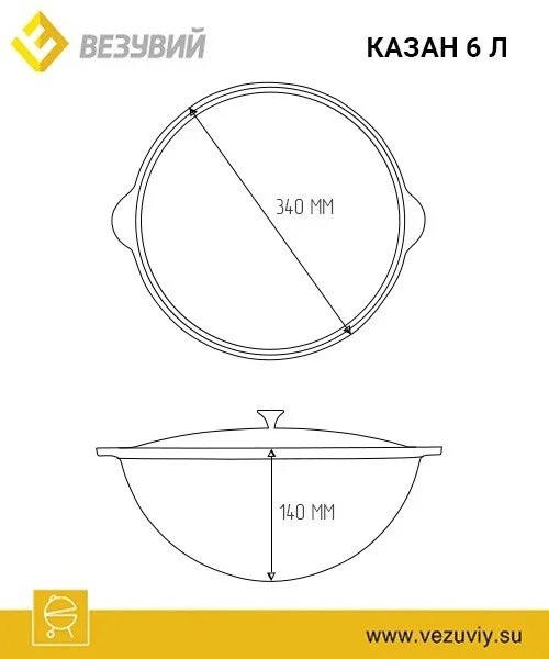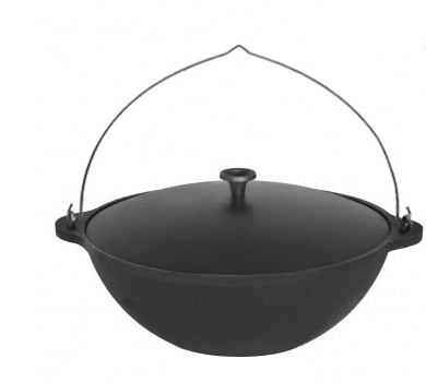 Казан чугунный Везувий 6 л с ручкой – применяется для приготовления различных блюд на открытом воздухе. Казан Везувий чугунный 6л с ручкой и алюминиевой крышкой – посуда, без которой не обходится ни одна восточная кухня, однако сегодня он пользуется популярностью и у нас в стране. Это и понятно, ведь казан прост в использовании, неприхотлив в быту и позволяет приготовить вкуснейшие блюда. Ну а чтобы готовка в казане принесла радость, нужно правильно его выбрать. Они бывают из алюминия, чугуна, меди, и даже стали. Используя казан из чугуна, Вы сможете приготовить отменное блюдо. Он уникален тем, что, благодаря своей форме и материалу он обладает высокой теплоотдачей. Толстые стенки казана позволят избежать пригорания блюда и надолго сохранят тепло.