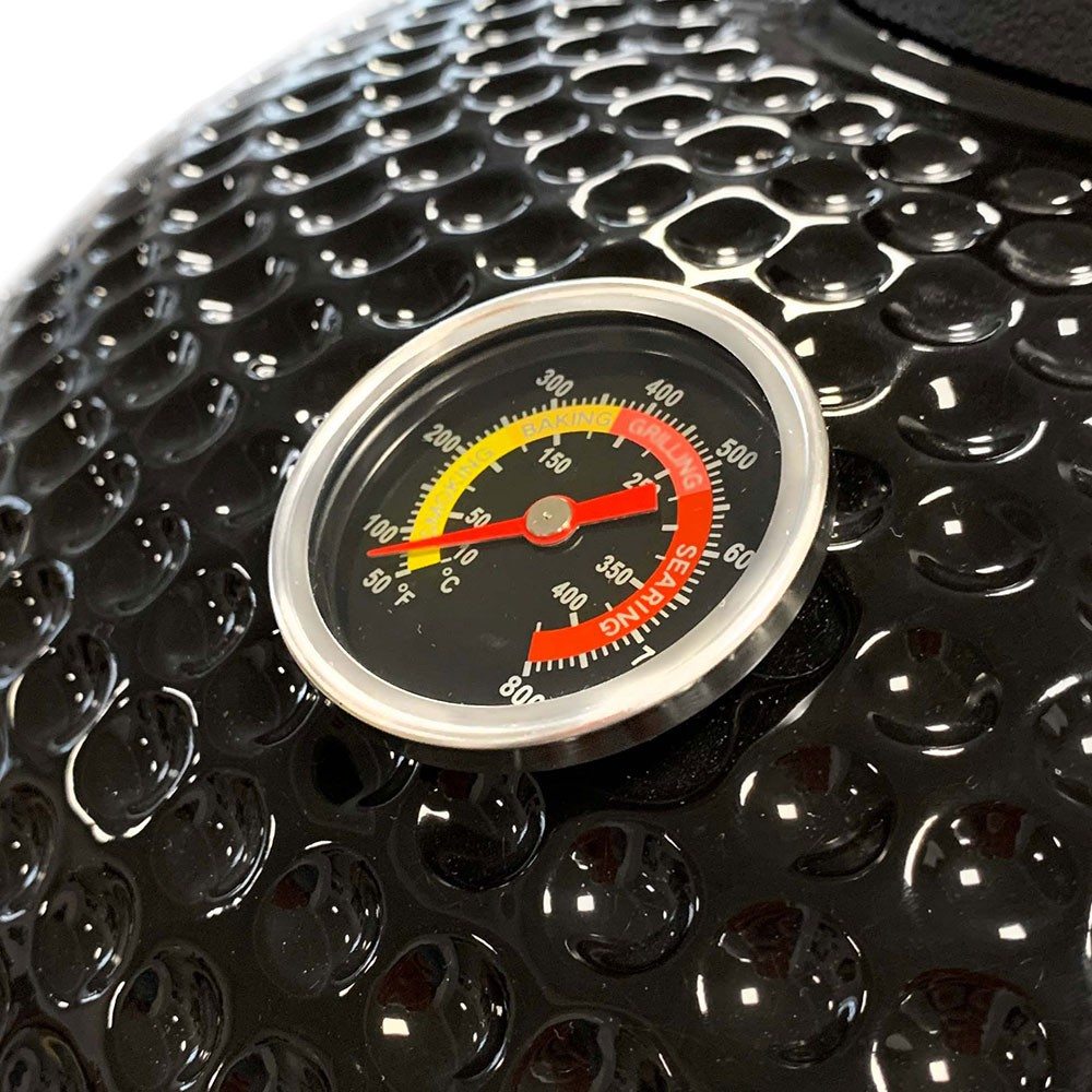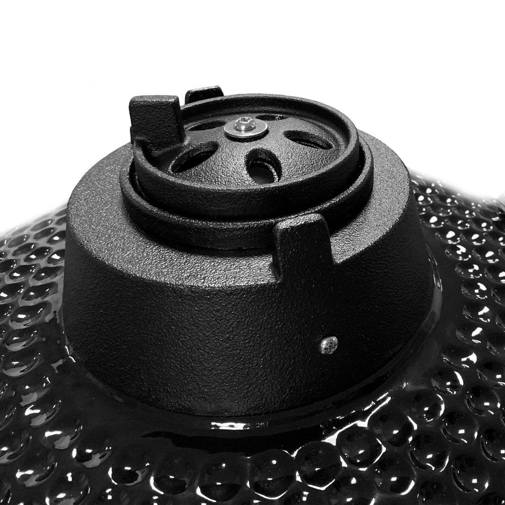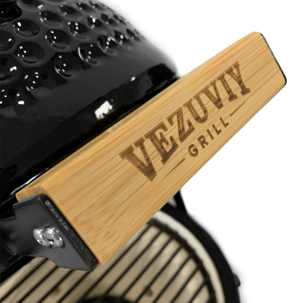 За счёт конструкции керамического гриля ВЕЗУВИЙ, можно в широких пределах регулировать тягу. От величины тяги и силы горения углей в гриле зависит температура внутри гриля и скорость приготовления продуктов. При открытых заслонках поддувала и верхнего регулятора тяги температура внутри гриля может достигать 350-400 градусов. В зависимости от размера гриля, в нем можно одновременно готовить от двух небольших стейков до полноценного обеда на 3-4 человек. Качественная керамика во время нагрева хорошо запасает тепло, а по окончании горения угля долго остается горячей и поддерживает высокую температуру внутри гриля. Верхняя крышка гриля открывается с помощью ручки из бамбука, расположенной на передней поверхности керамического гриля.