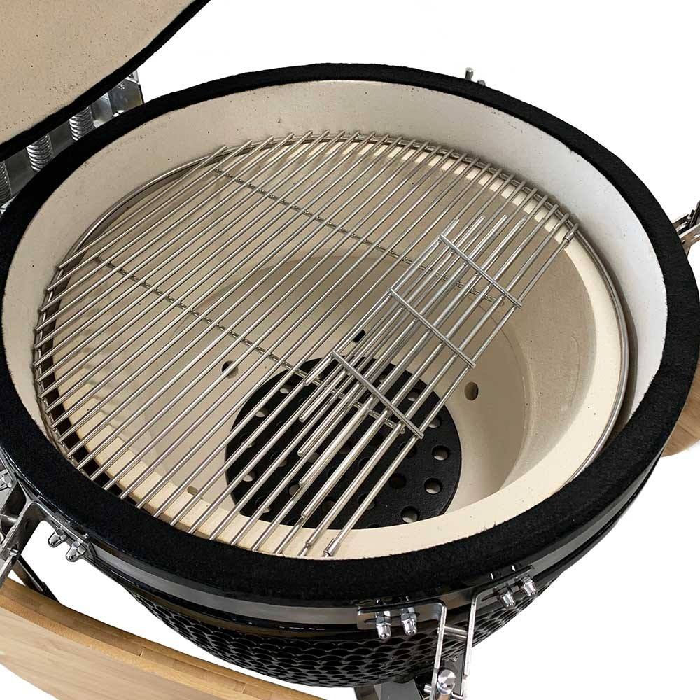 Керамические грили дарят отличную возможность приготовить на открытом огне блюда самых разных кухонь мира. Накопленное во время нагрева гриля тепло позволяет жарить, варить, коптить и запекать самые разные продукты. Основные элементы гриля сделаны из керамики — внешний корпус, внутренняя чаша для углей, подставка для решёток. Глазированная керамика снаружи защищает гриль от непогоды, внешних повреждений и загрязнения. Гриль легко мыть и очищать. Гриль состоит из двух половин корпуса, внутрь которого ставят чашу для углей, решётку для размещения продуктов и посуды, дополнительные приспособления.