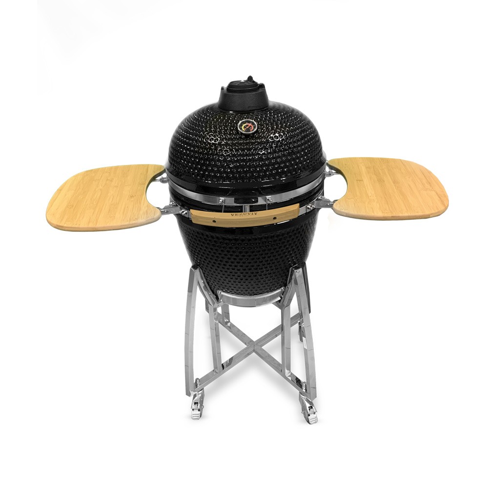 Керамические грили дарят отличную возможность приготовить на открытом огне блюда самых разных кухонь мира. Накопленное во время нагрева гриля тепло позволяет жарить, варить, коптить и запекать самые разные продукты. Основные элементы гриля сделаны из керамики — внешний корпус, внутренняя чаша для углей, подставка для решёток. Глазированная керамика снаружи защищает гриль от непогоды, внешних повреждений и загрязнения. Гриль легко мыть и очищать. Гриль состоит из двух половин корпуса, внутрь которого ставят чашу для углей, решётку для размещения продуктов и посуды, дополнительные приспособления.