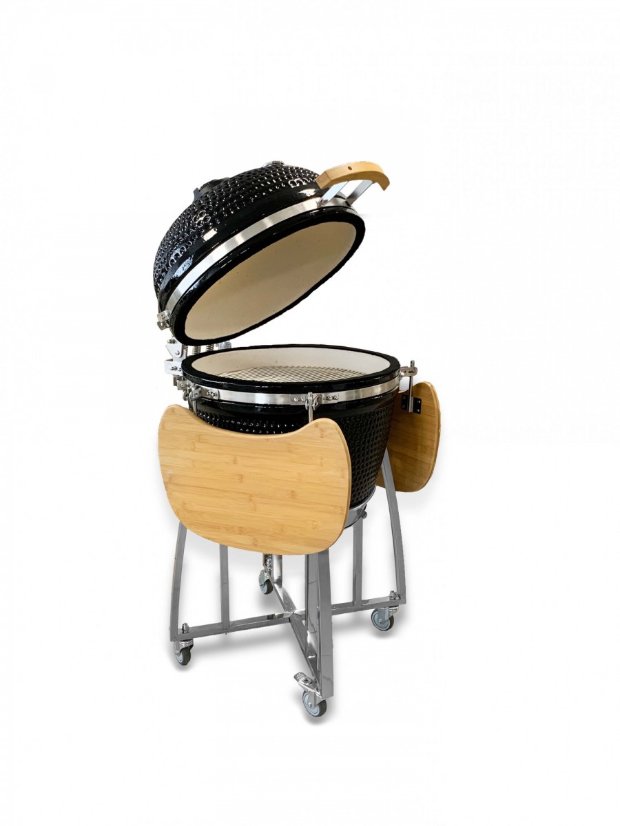 Керамические грили дарят отличную возможность приготовить на открытом огне блюда самых разных кухонь мира. Накопленное во время нагрева гриля тепло позволяет жарить, варить, коптить и запекать самые разные продукты. Основные элементы гриля сделаны из керамики — внешний корпус, внутренняя чаша для углей, подставка для решёток. Глазированная керамика снаружи защищает гриль от непогоды, внешних повреждений и загрязнения. Гриль легко мыть и очищать. Гриль состоит из двух половин корпуса, внутрь которого ставят чашу для углей, решётку для размещения продуктов и посуды, дополнительные приспособления.