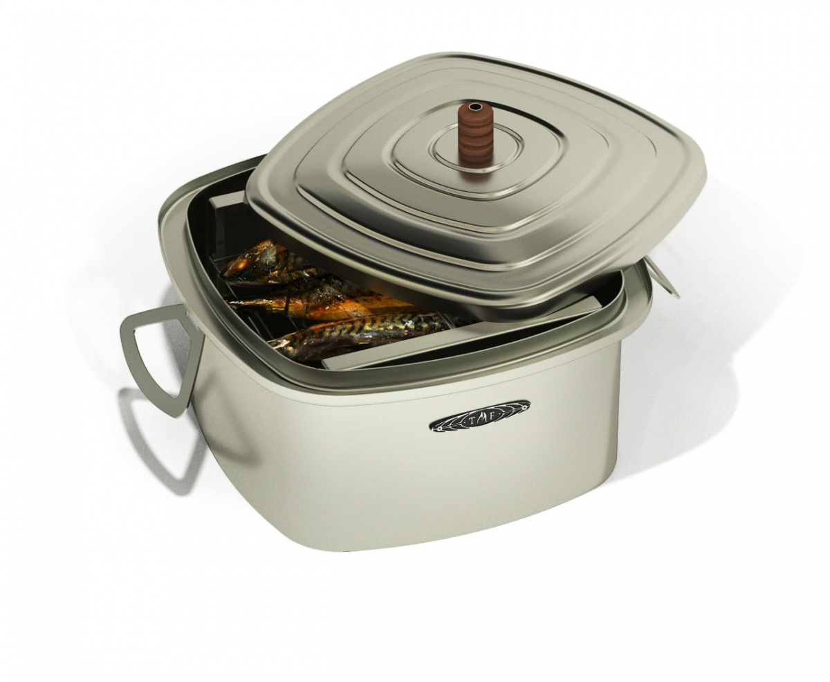 Коптильня «Нельма Лайт» предназначена для горячего копчения рыбы, птицы, мяса, сала, сыра и других продуктов на открытом воздухе. В этой модели отсутствует встроенная дровяная печь, коптильня представляет собой камеру высотой 25 см и диагональ в плане 39 см. Удобна для транспортировки, не занимает много места при хранении. Коптильня может устанавливаться на горящий мангал, костер, газовую горелку или электрическую конфорку. Крышка камеры имеет форму свода, поэтому образующийся на ней изнутри конденсат стекает не на продукты и не на внешнюю поверхность камеры, а в желоб гидрозатвора. Гидрозатвор предназначен как для сбора конденсата, так и для запирания в коптильной камере испарений и резких запахов. Вода в гидрозатворе не позволяет дыму выходить наружу. Дым концентрируется внутри коптильной камеры, отчего блюда получаются более ароматными и вкусными.